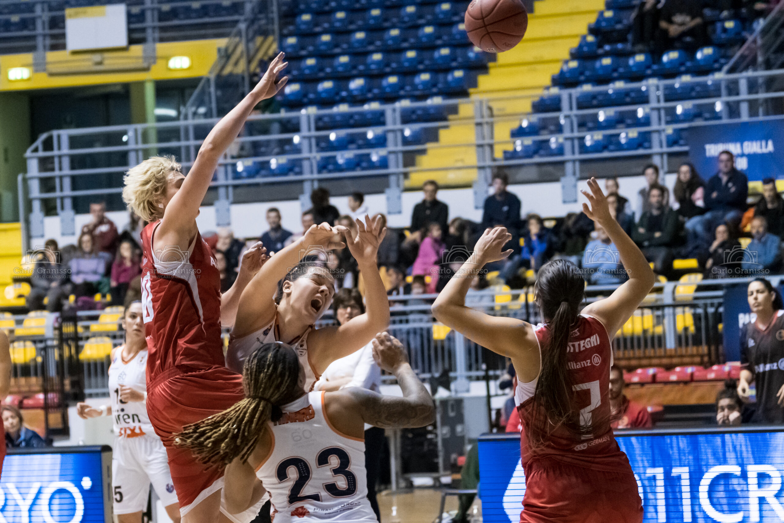 Il terzo quarto è a forti tinte rossonere, le ospiti spingono ed allungano fino al +12 sul quale coach Riga chiama timeout al 26’ sul 30-42. L’ampiezza di rotazioni a netto vantaggio dell’Allianz si fa sentire. La difesa torinese si stringe, in attacco Barberis e Togliani provano ad accorciare le distanze ma dinanzi si trovano la tripla di Arturi per il 36-47 ospite. Terza frazione di gioco con le pantere che inseguono 38-50.